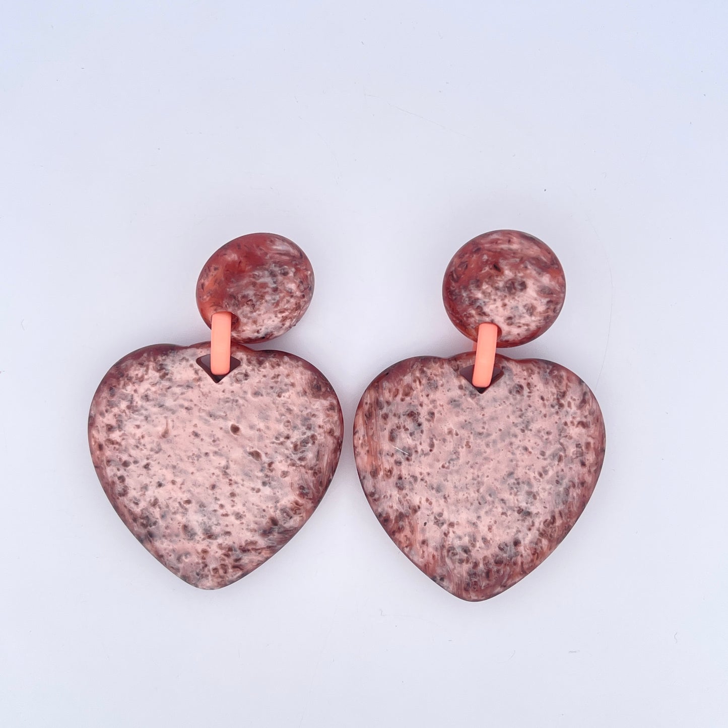 Ces boucles d'oreilles romantiques arborent des cœurs en résine marbrée reliés à des clous ronds assortis aux maillons couleur abricot doux. Un design audacieux et élégant qui apporte chaleur et charme à tous les looks.