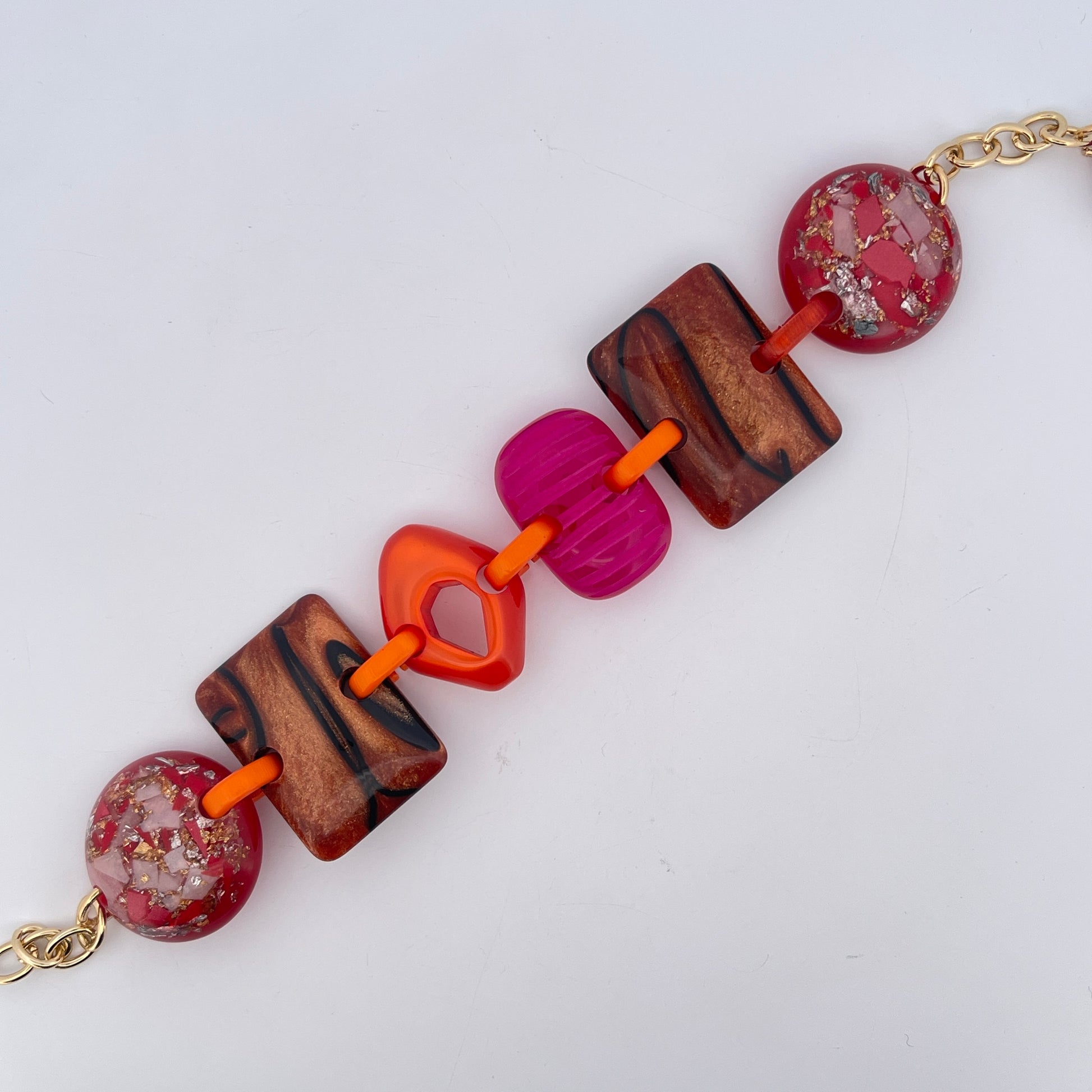 Dankzij de stijlvolle mix van vormen en kleuren is deze armband van hars een opvallend en uniek sieraad dat u elke dag met plezier draagt.
