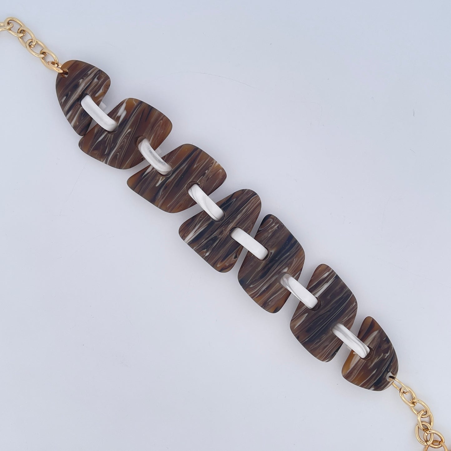 This stylish bracelet features a unique design with alternating brown and white stripes, creating a modern and eye-catching look. Made from high-quality materials, it is both durable and comfortable to wear. Perfect for adding a touch of elegance to any outfit, this bracelet is a versatile accessory for both casual and formal occasions.