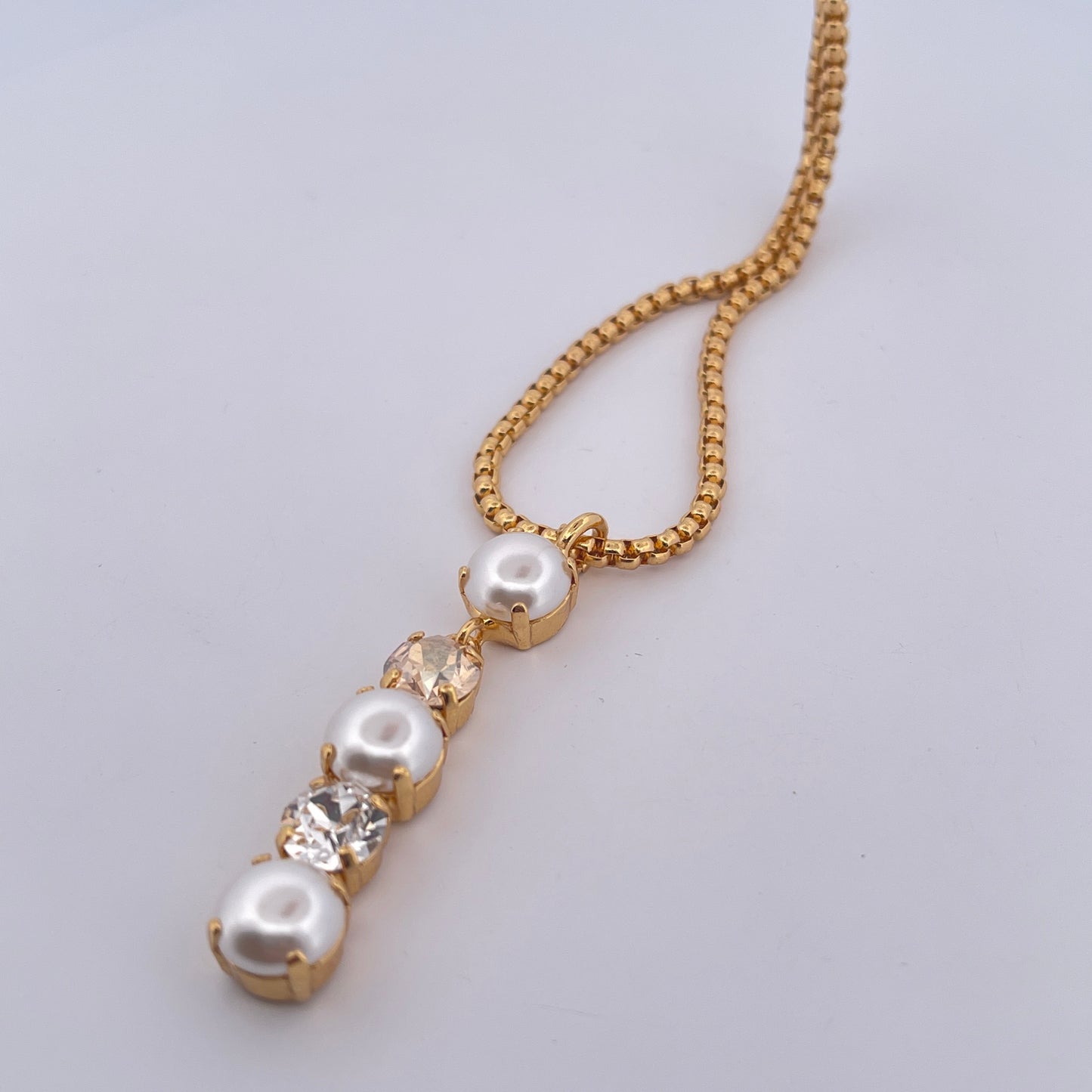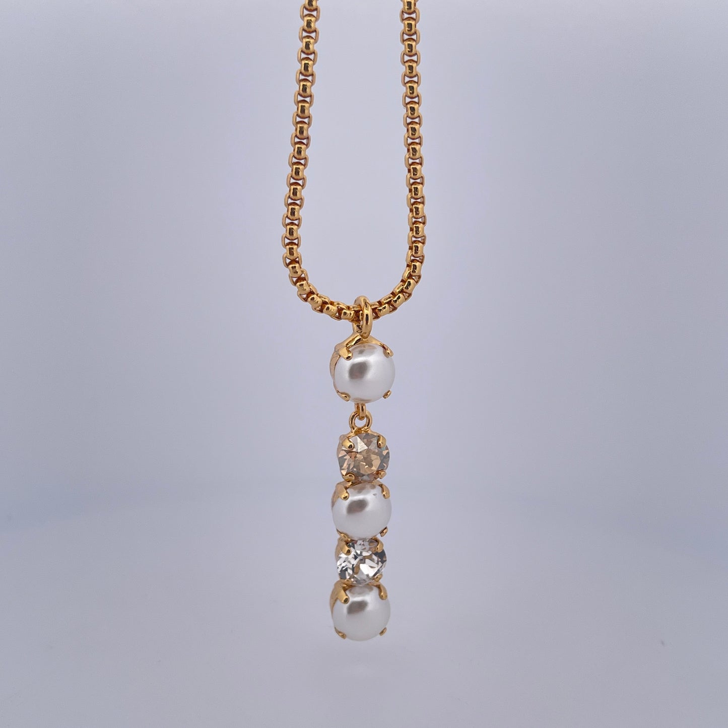 This necklace is a beautiful gold piece with a pearl pendant. It adds a touch of elegance and sophistication to any outfit. The pearl pendant is a classic and timeless accessory that can be worn with both formal and casual attire. The gold chain complements the pendant, making it a versatile piece that can be dressed up or down. This necklace is perfect for special occasions, such as weddings, proms, or formal events, as well as for everyday wear to elevate your style. The combination of gold and pearls gives the necklace a luxurious and refined appearance, making it a must-have addition to any jewelry collection.